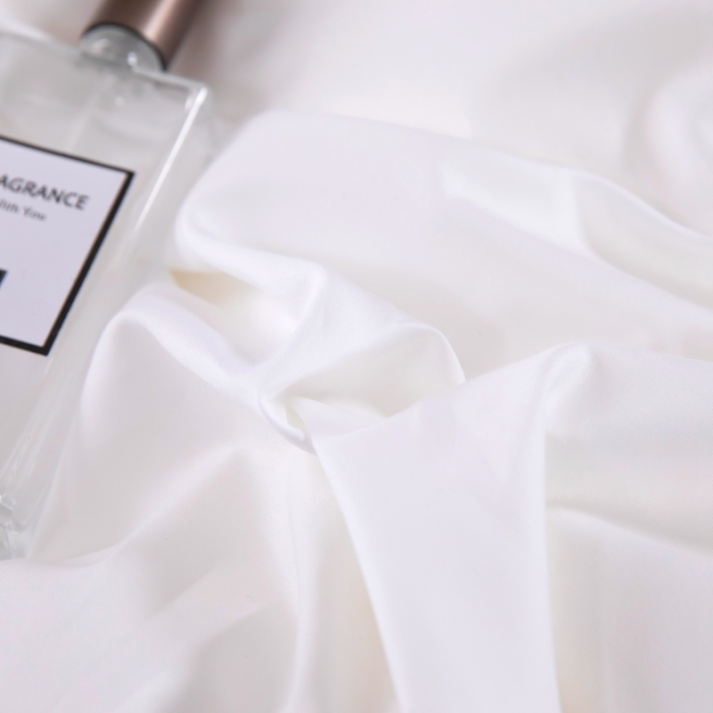 The 6080S 400TC 100% Cotton Sateen Plain White Hotel Bedding Set is designed to enhance the ambiance of hotel rooms. Its clean, crisp aesthetic embodies both modern and traditional tastes. The pure white finish creates a tranquil and peaceful ambiance, creating a restful sleep environment for guests. The perfect blend of the luxurious feel of high-thread-count cotton and the delicate sheen of satin weave is a hallmark of high-end hotel bedding. The crisp, smooth texture of satin weave enhances the overall visual appeal and comfort of the bedding. The 100% cotton satin weave withstands repeated washing without compromising its softness, gloss, or structural integrity. This high-quality fabric ensures that the bedding remains smooth, soft, and beautiful even after repeated washes.