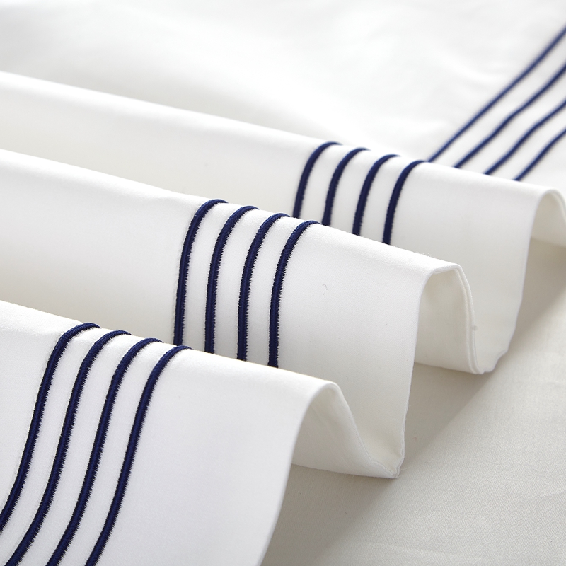 Four Lines Embroidery Duvet Cover 100% Cotton White 300TC Bedding Sheet Set