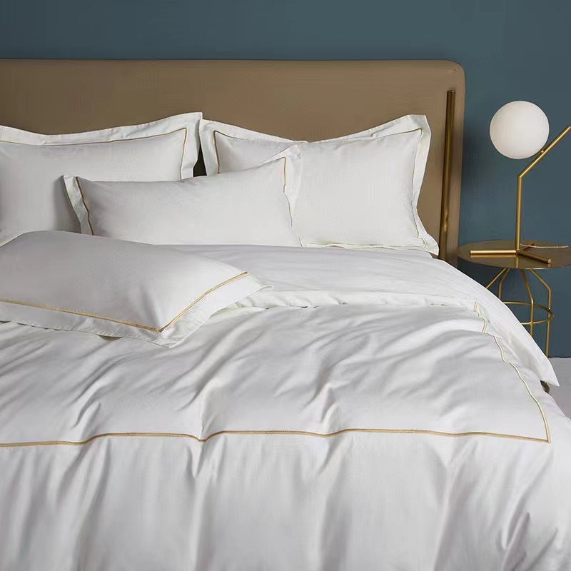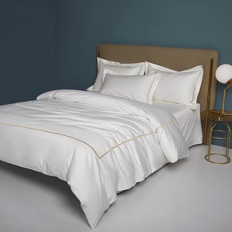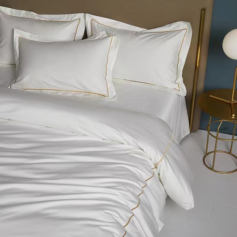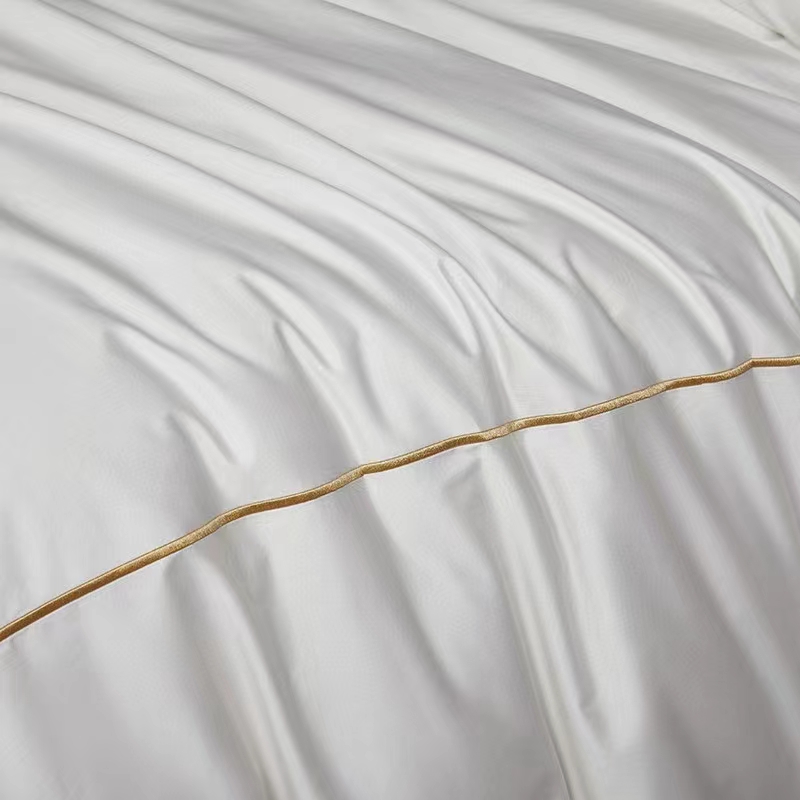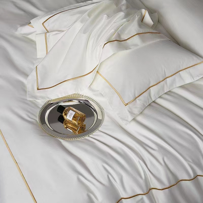 Single Line Embroidery 100% Cotton White 300TC Bedding Sheet Set Duvet Cover